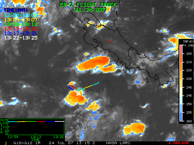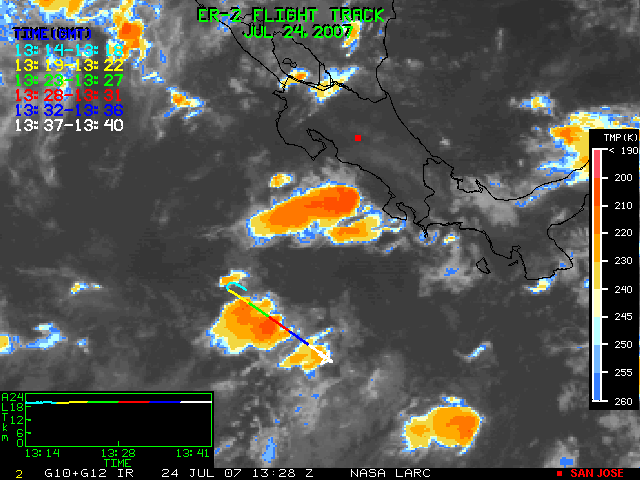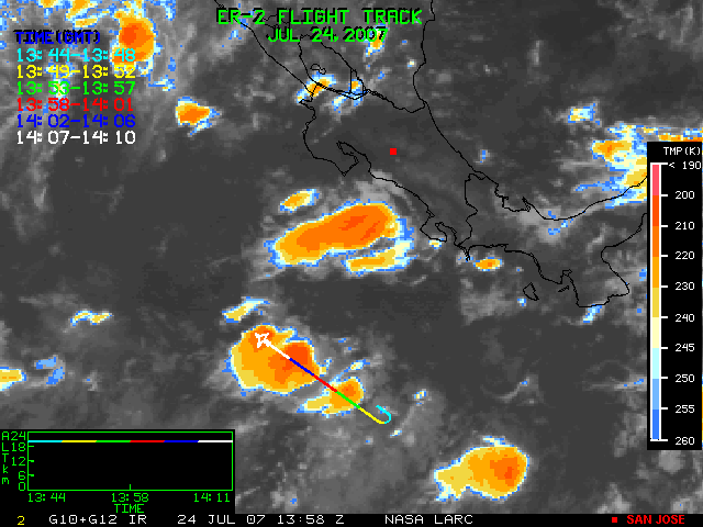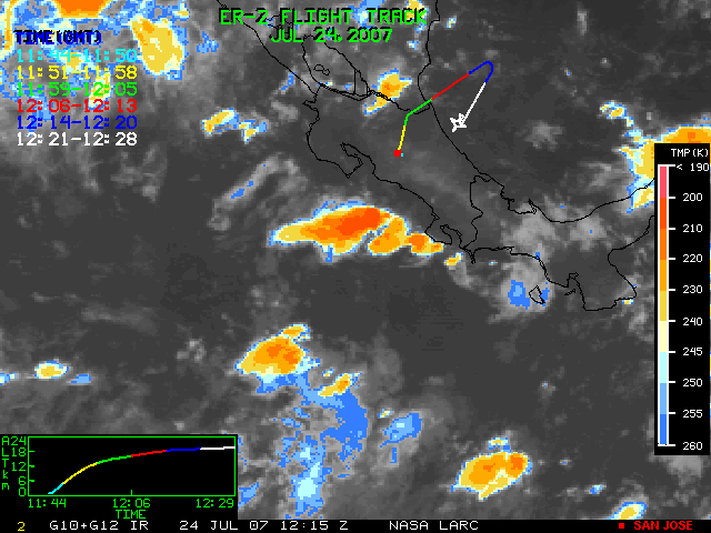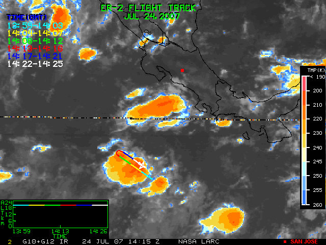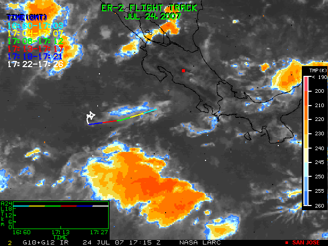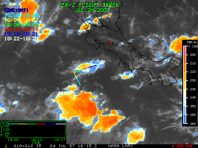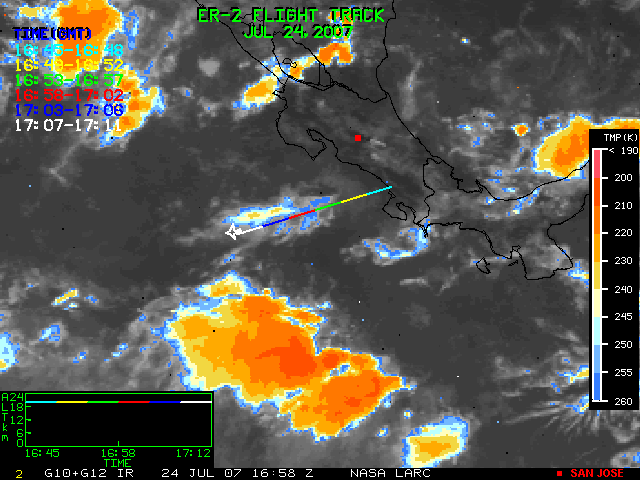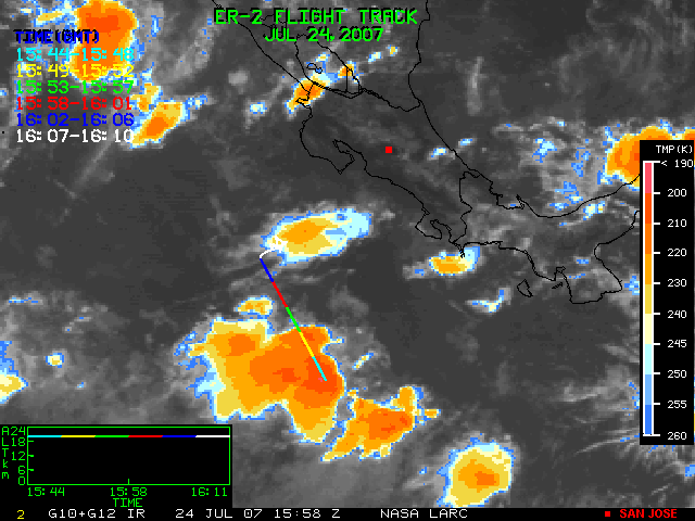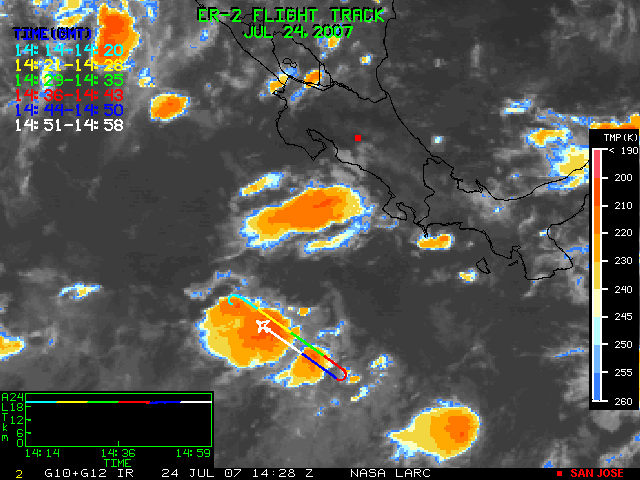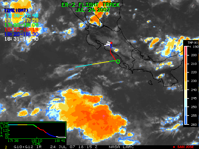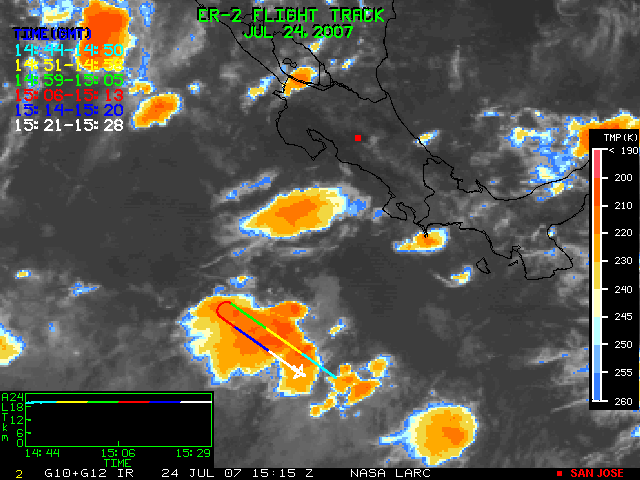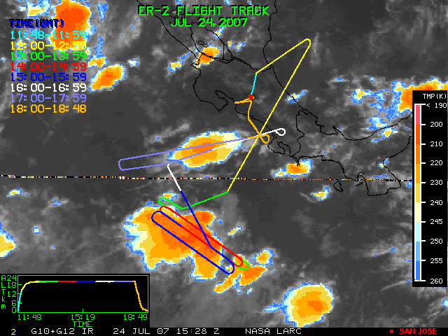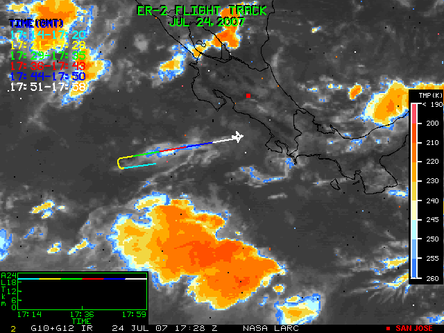 GOES (G10+G12) Visible image (24 July 2007 15:28 UTC) showing ER2 flight track