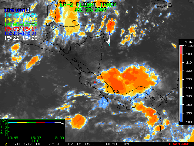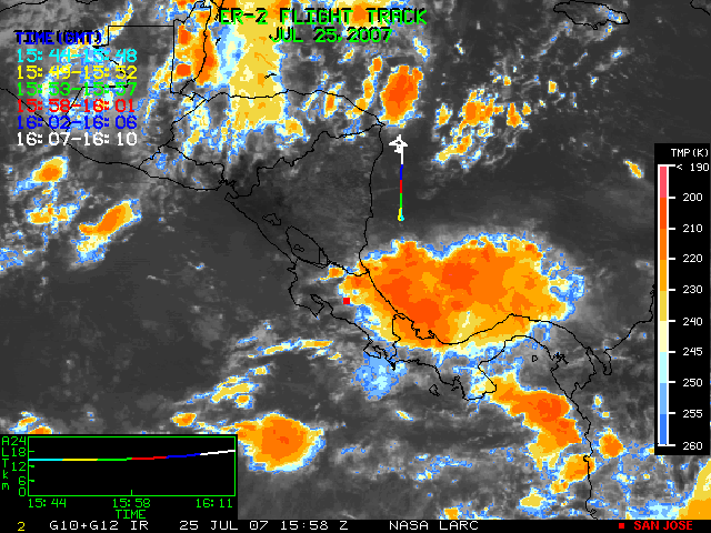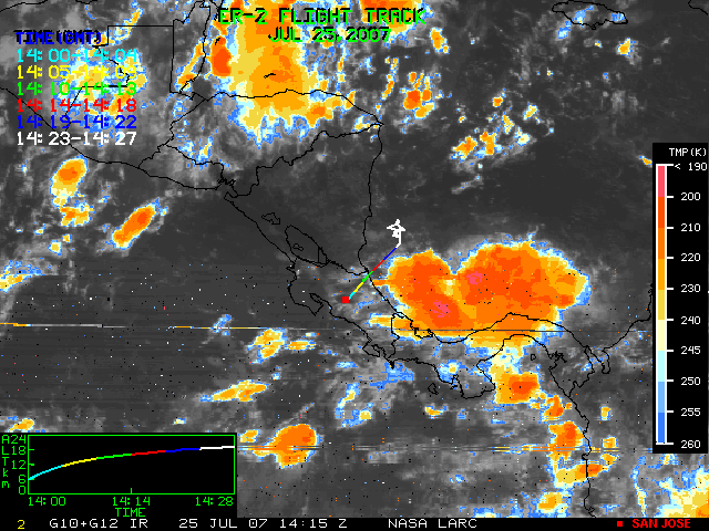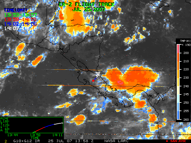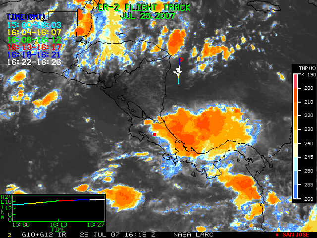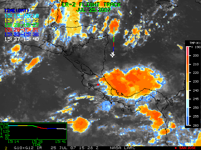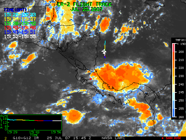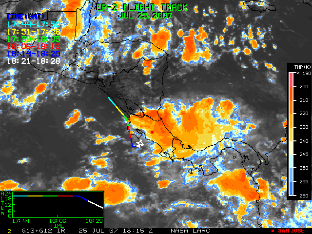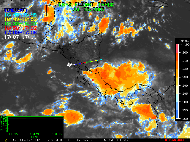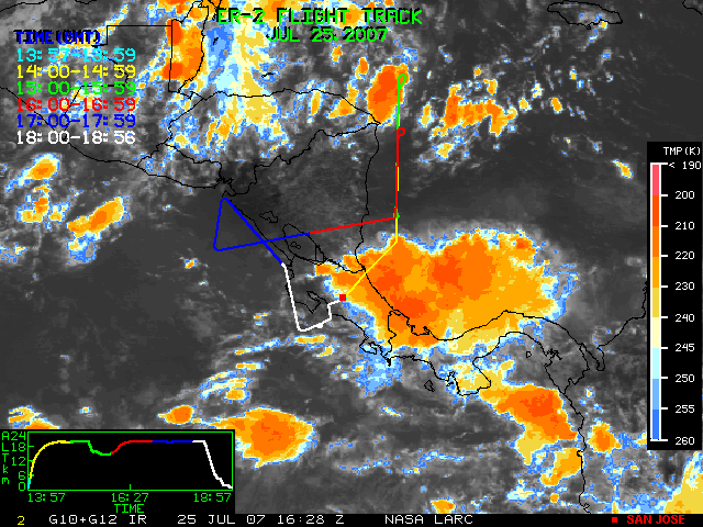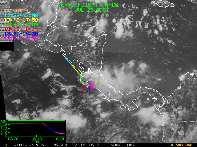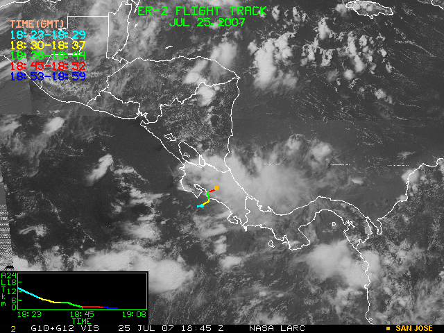 GOES (G10+G12) Visible image (25 July 2007 16:28 UTC) showing ER2 flight track