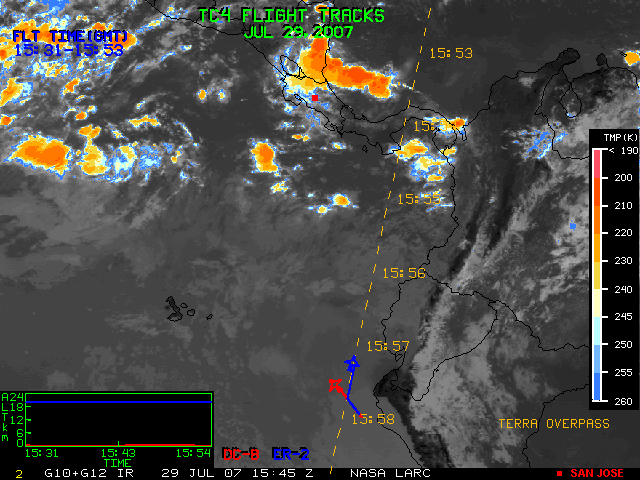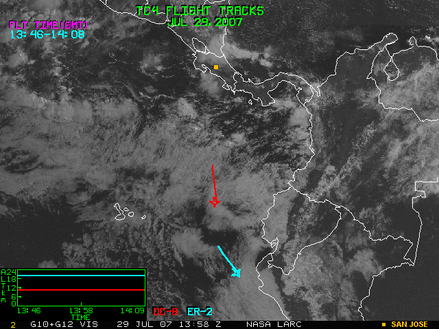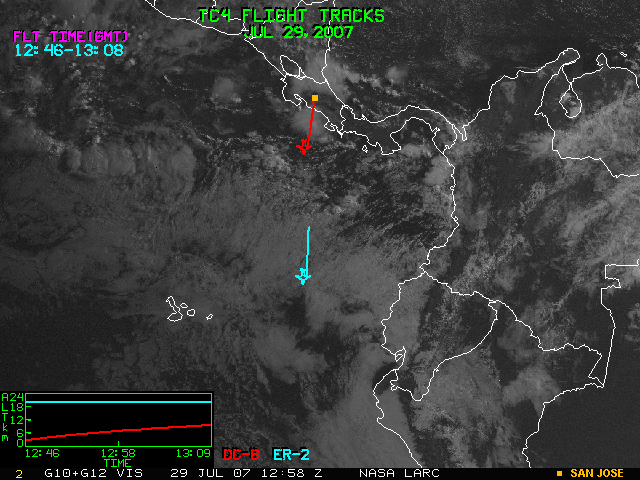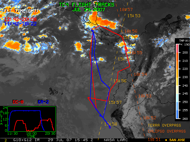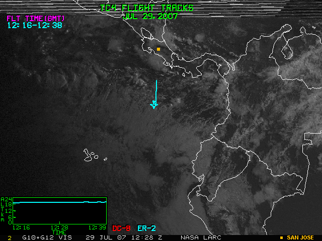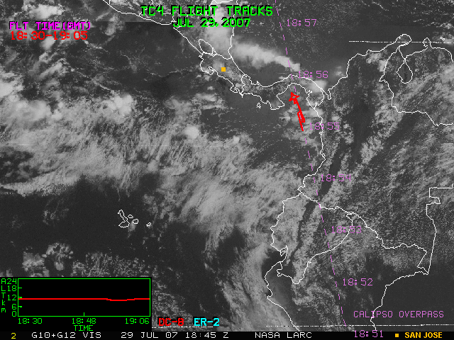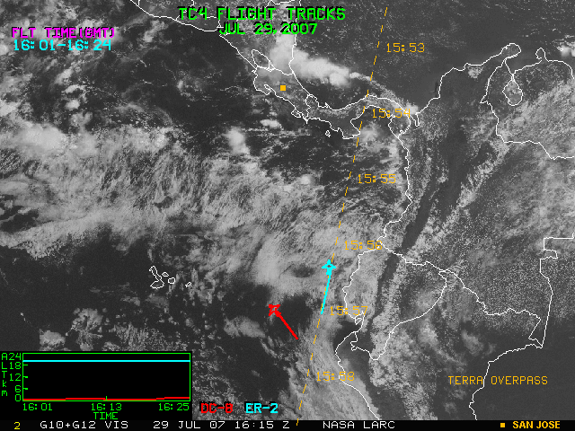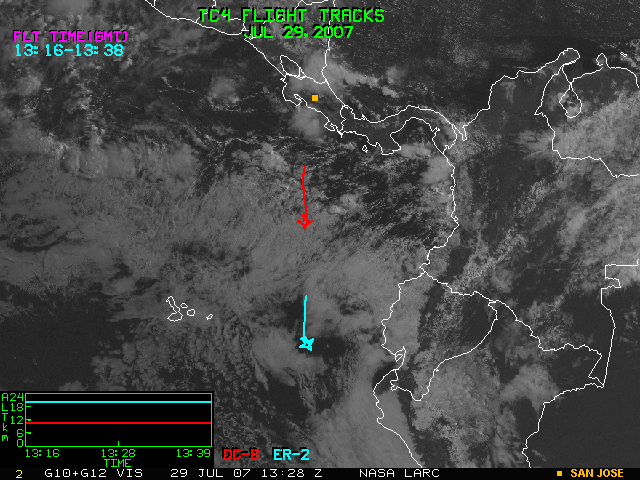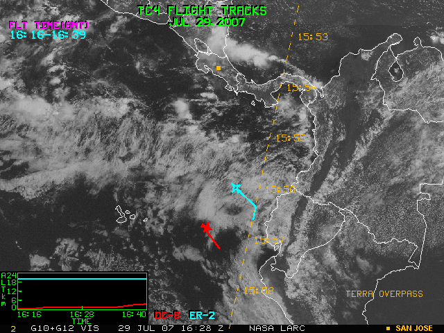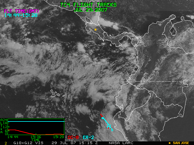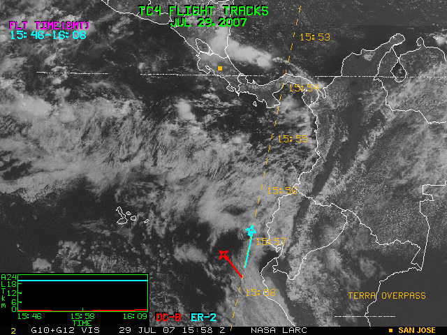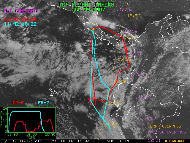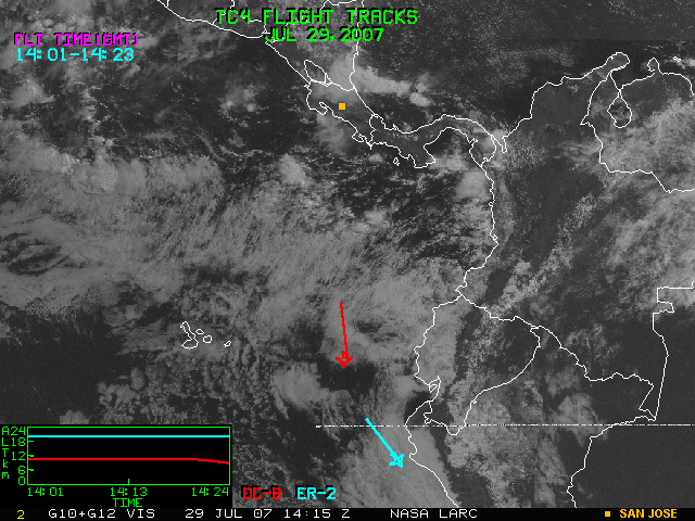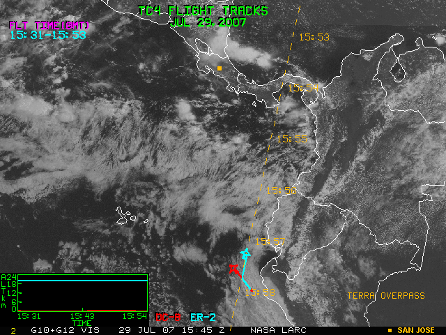GOES (G10+G12) Visible image (29 July 2007 15:45 UTC) with aircraft flight tracks
