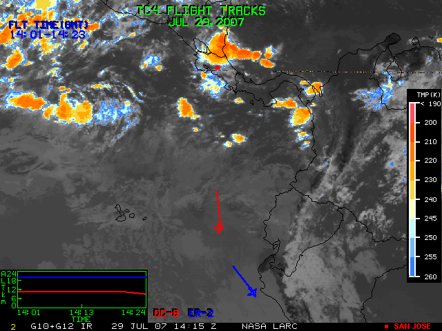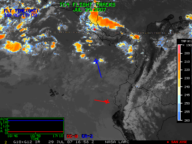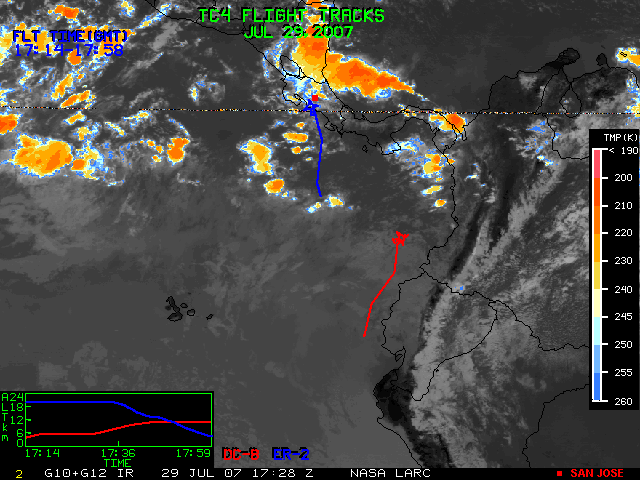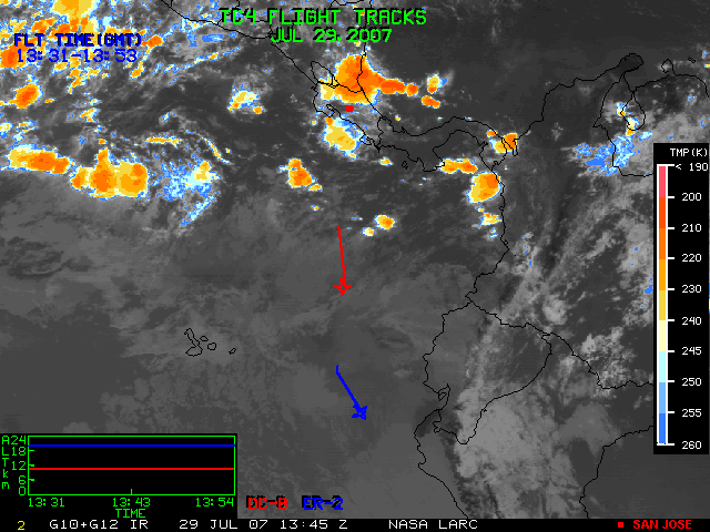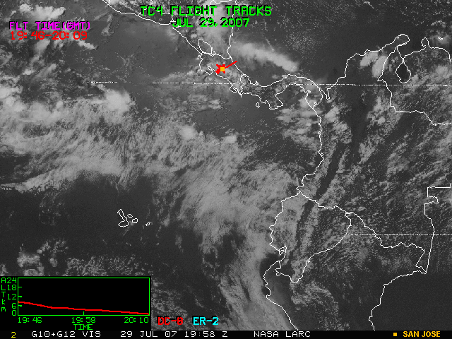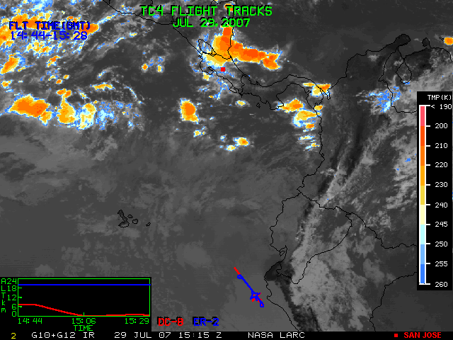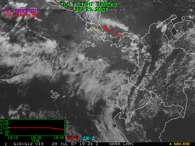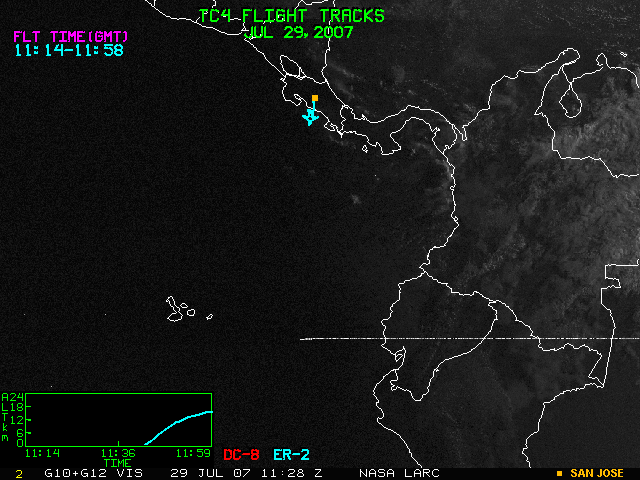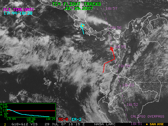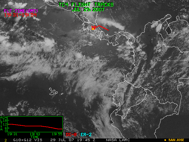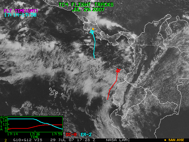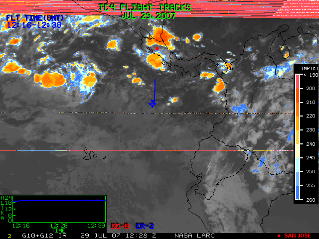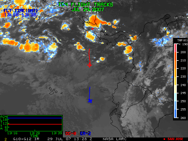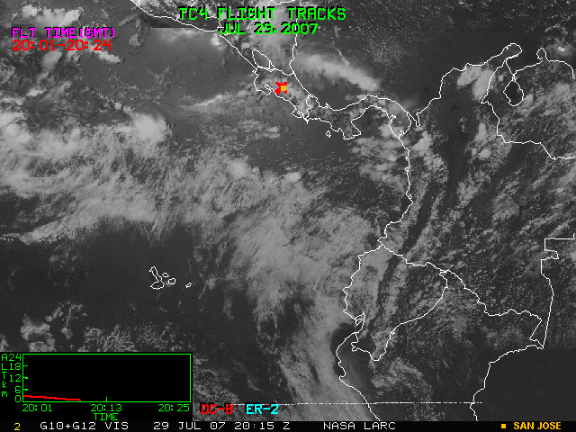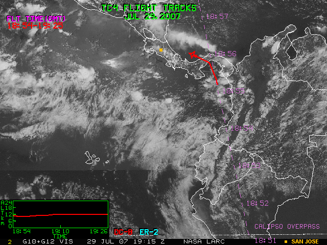GOES (G10+G12) Visible image (29 July 2007 15:45 UTC) with aircraft flight tracks