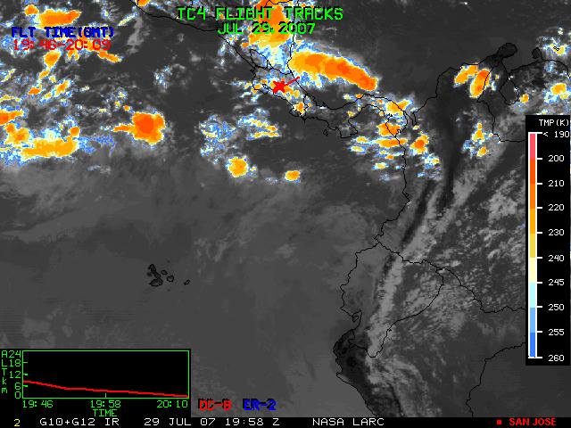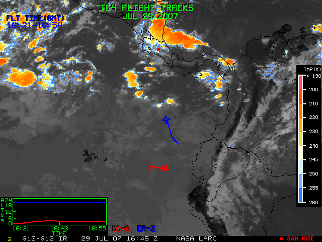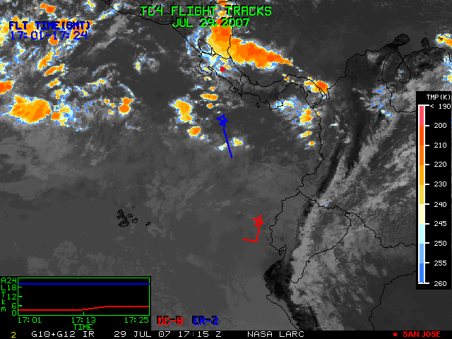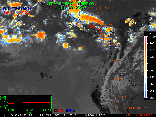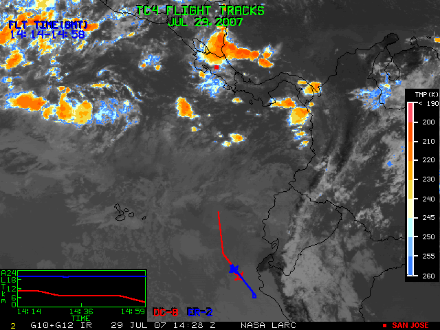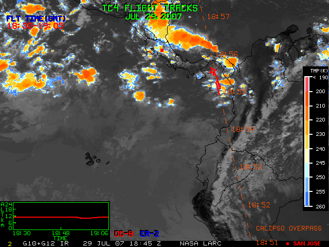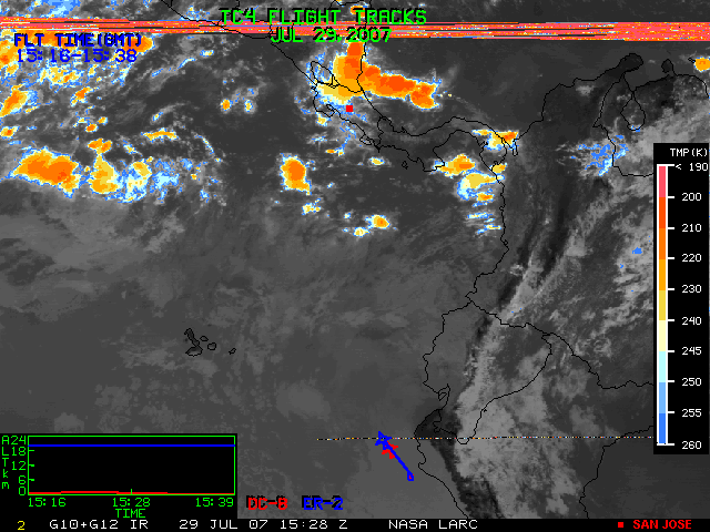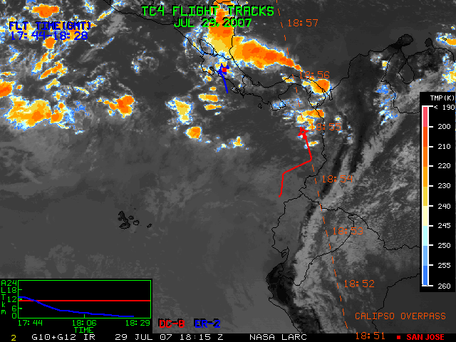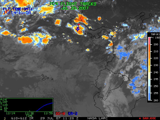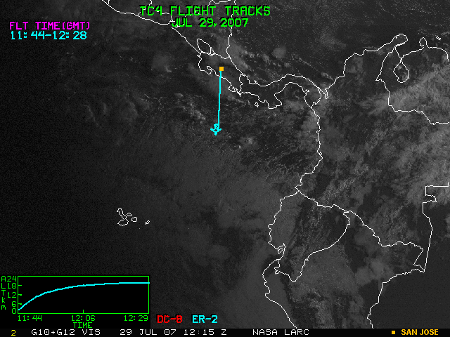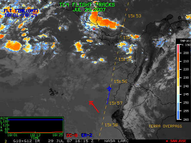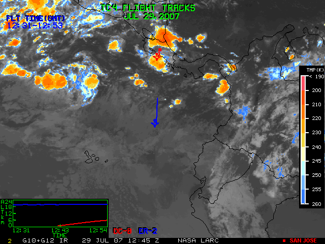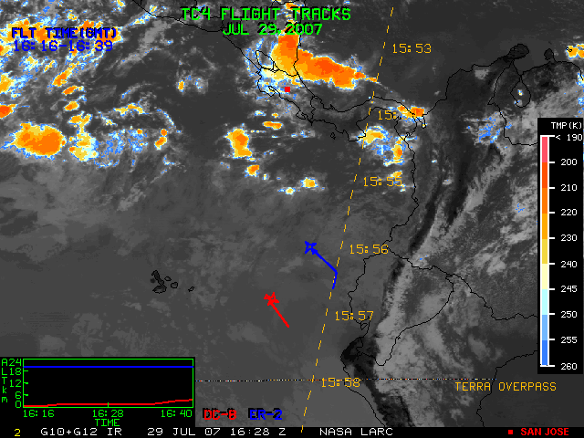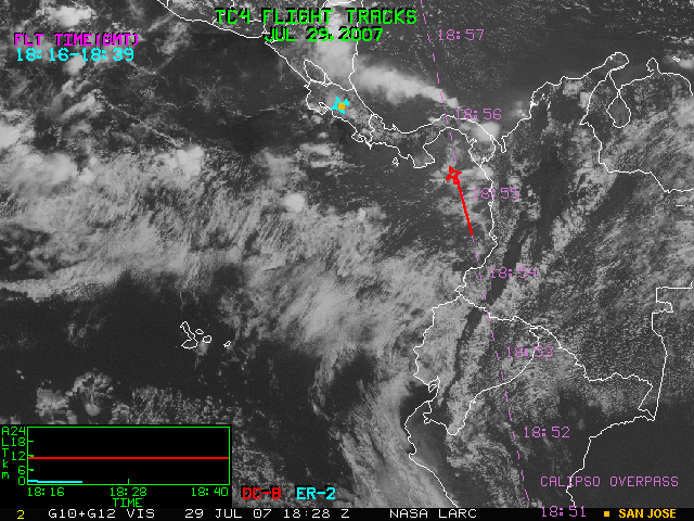 GOES (G10+G12) Visible image (29 July 2007 15:45 UTC) with aircraft flight tracks