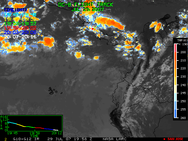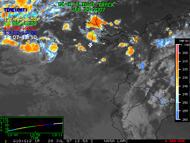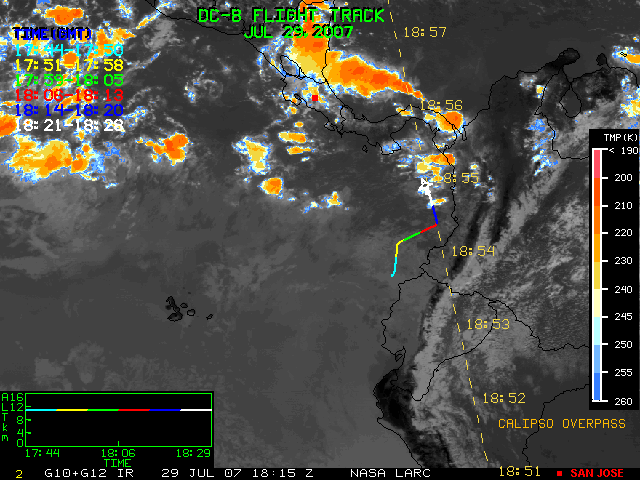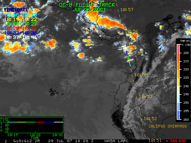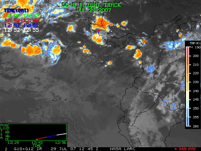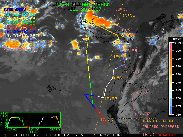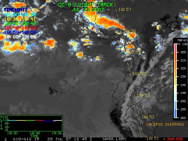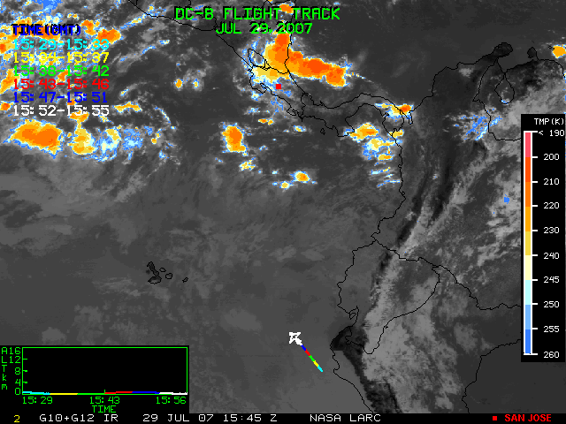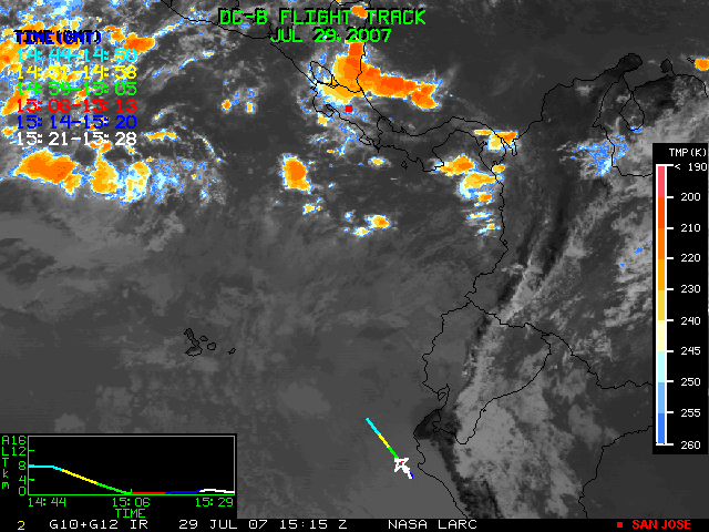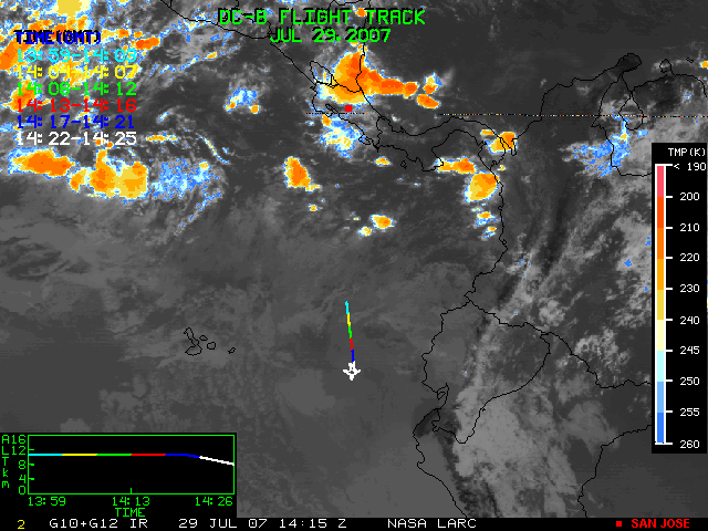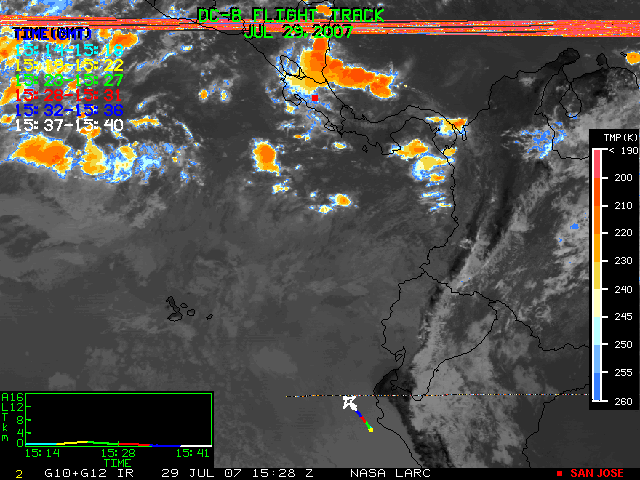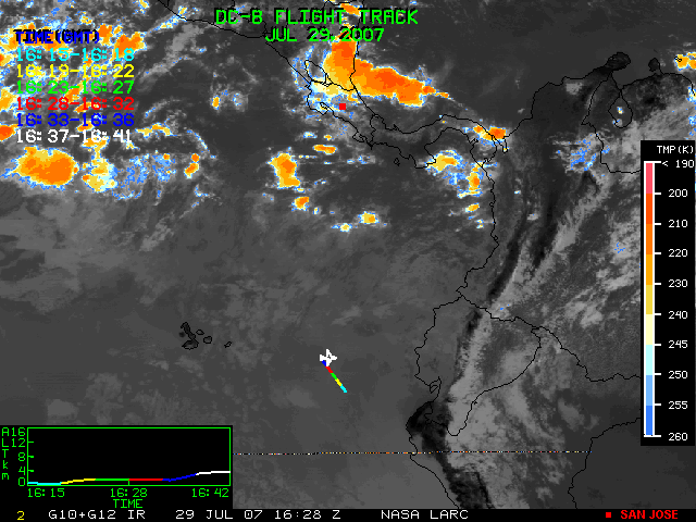 GOES (G10+G12) Visible image (29 July 2007 16:28 UTC) showing DC8 flight track